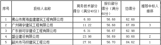 第一中標候選人:韶關市馬壩建筑工程公司,投標報價:¥1933008.67元;
