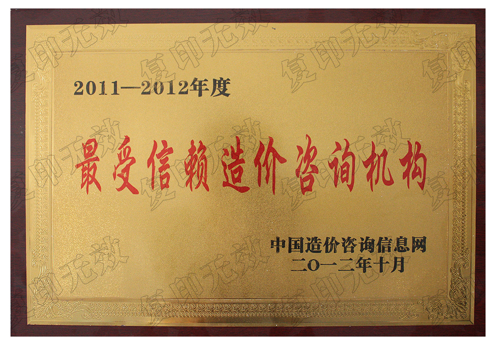 先后榮獲中價協(xié)AAA信用企業(yè),陜價協(xié)副理事單位,連續(xù)八年榮獲陜西省工程造價咨詢20強(qiáng)/30強(qiáng),傲人的成績來源于行業(yè)的高度認(rèn)可。